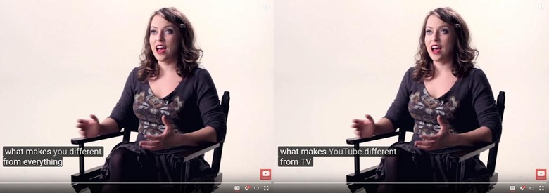 Kaver said they made automated captions more available to YouTubers by combining Google's automatic speech recognition technology with the YouTube caption system. They then achieved a 50 percent leap in accuracy — for English captions, at least — by improving the service's machine learning algorithms and expanding its training data. We all know how funny caption fails can be, but people who have no other way of knowing what was actually said would end up missing bits of information. In the image above, you'll see an example comparing the service's old (left) and current (right) models.