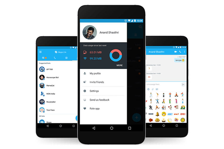 Skype's place as the original gangster of internet messengers means that it's never had to watch its weight, until now. Microsoft has put the app on a diet to announce Skype Lite, a slimmed-down messenger designed for countries like India. You'll win no prizes for guessing that the Android app will heavily compress images and video and is intended to work reliably even on India's 2G wireless infrastructure.