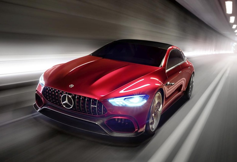As far as that impressive powertrain, this is no plug-in hybrid, with batteries that charge via brake recuperation or from the gasoline engine if the charge drops below a certain level. It has an all-wheel-drive system, with its electric motor driving the rear wheels directly. It also rocks the recently-announced "EQ" branding, seen here as EQ Power+, meant to represent the increased performance of hybrids. Everything adds up to a four-door "coupe" that can go 0-60MPH in under three seconds while remaining suitable for daily use — if you can ever buy one.