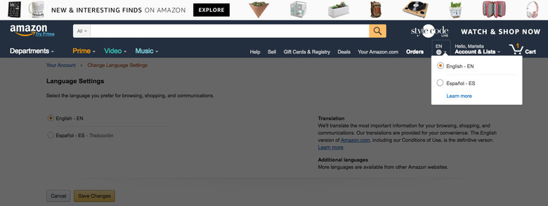 You can now browse Amazon's main website and mobile app in Spanish — and, yes, we mean Amazon.com, not its .es counterpart. The e-commerce company has even added an easily accessible language settings option on the website's interface, right next to the "Accounts & Lists" drop-down menu. As CNET noted, Amazon is most likely looking to attract more Spanish-speaking shoppers, especially since the US now has 41 million native speakers and 11 million bilingual residents. It even recently expanded Prime to cover Mexico, offering the same free unlimited shopping and streaming videos customers get in the US.