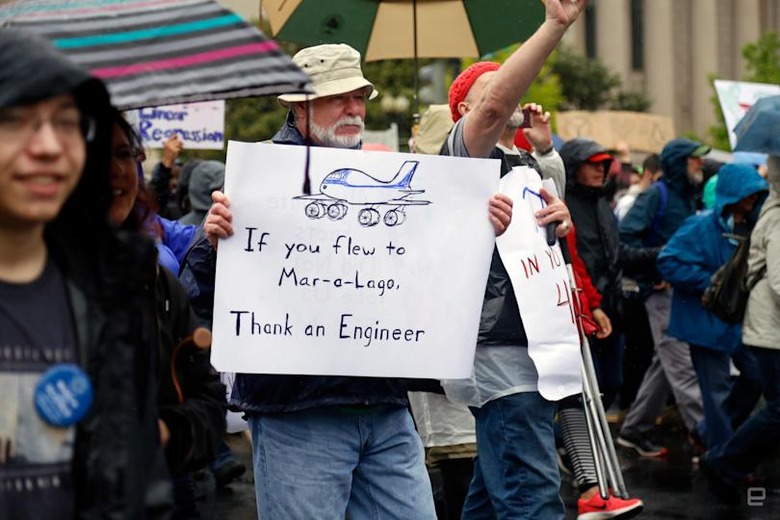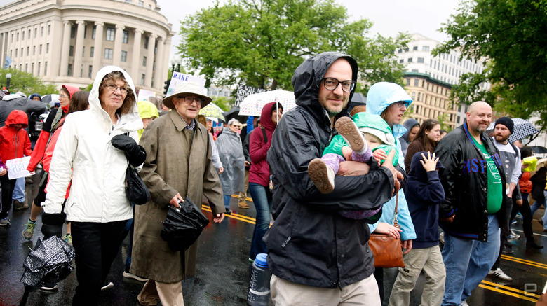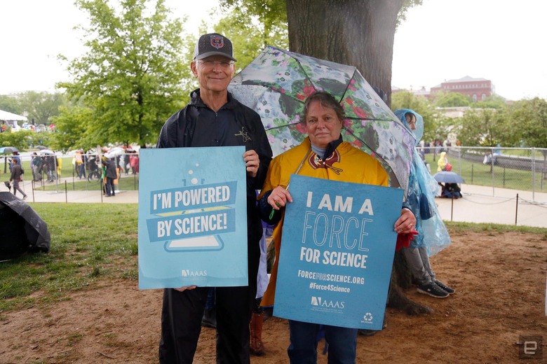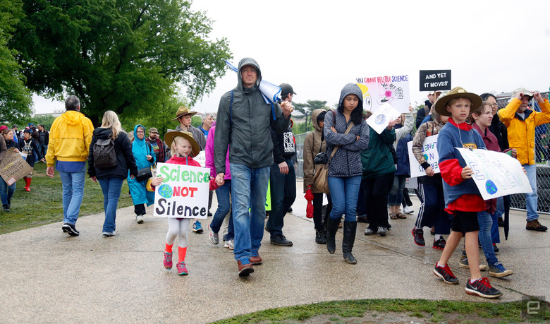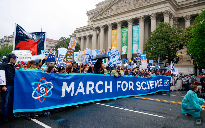 A balmy Friday evening gave way to a miserable Saturday, with low, gray clouds that blotted out the sun and soaked Washington DC with rain. That wasn't enough to stop thousands of people — from all over the country — from gathering on the grounds in front of the Washington Monument to march for science. It's no wonder, either.