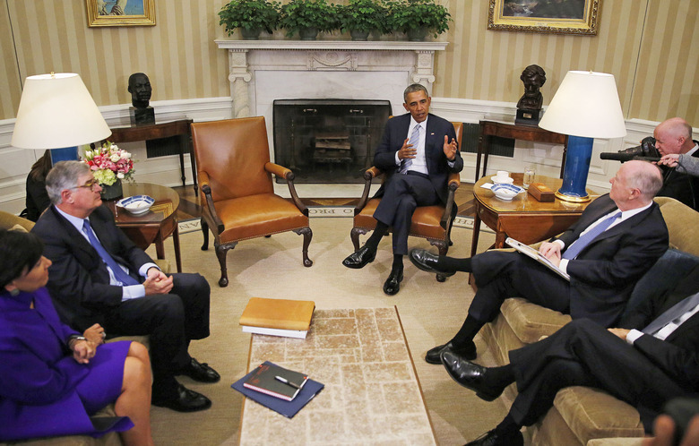 U.S. President Barack Obama meets with members of the Commission on Enhancing National Cybersecurity at the White House in Washington February 17, 2016.