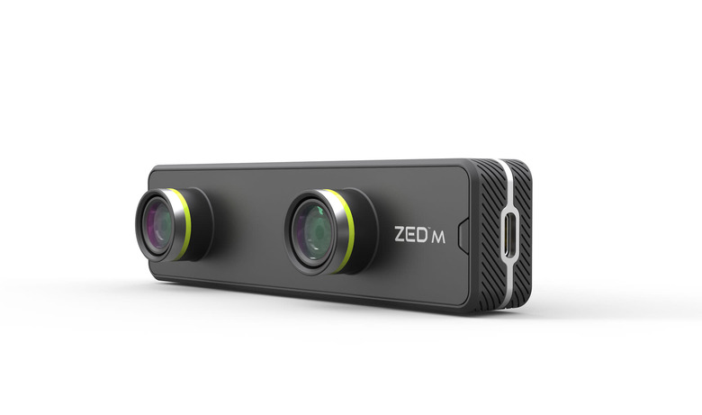 As the name suggests, the ZED Mini is essentially a tiny version of the ZED 3D camera. The idea with the ZED Mini is that it's small enough that you can just slap it on top of an existing VR headset — say, the HTC Vive or the Oculus Rift — and voilà, you'll get an augmented-reality headset without having to cough up thousands more dollars.