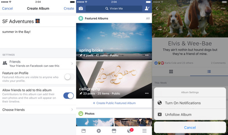 In addition to being able to compile and categorize pretty much every kind of status update, you can now choose a "featured" album to display on your profile. If you have friends who go on crazy adventures, you can follow theirs to get notified about their latest escapades. But if you went with them on those adventures, you can all collaborate on a single album now that Facebook has made the process easier — all you have to do is toggle the option on when you create a new one.