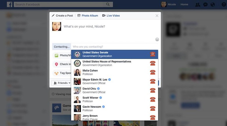 This feature, which was found by TechCrunch, will offer up relevant names, such as your nearest Governor, Senator or Representative. They aren't informed of your post directly, so you'll still have to call or write to them to actually let your feelings be known, but hey, politics is normally made by those who show up.