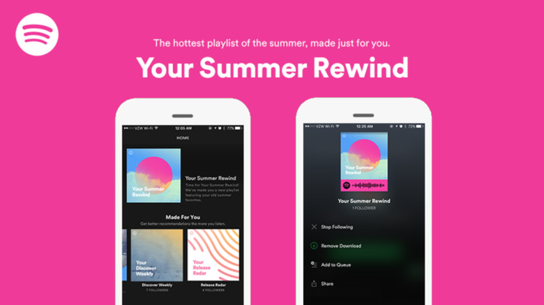 Spotify's known for excellent playlist curation and music discovery, and now they're extending that expertise to your favorite summer music. Starting today, Spotify users can find their most-listened to songs of past summers on the new "Your Summer Rewind" playlist.