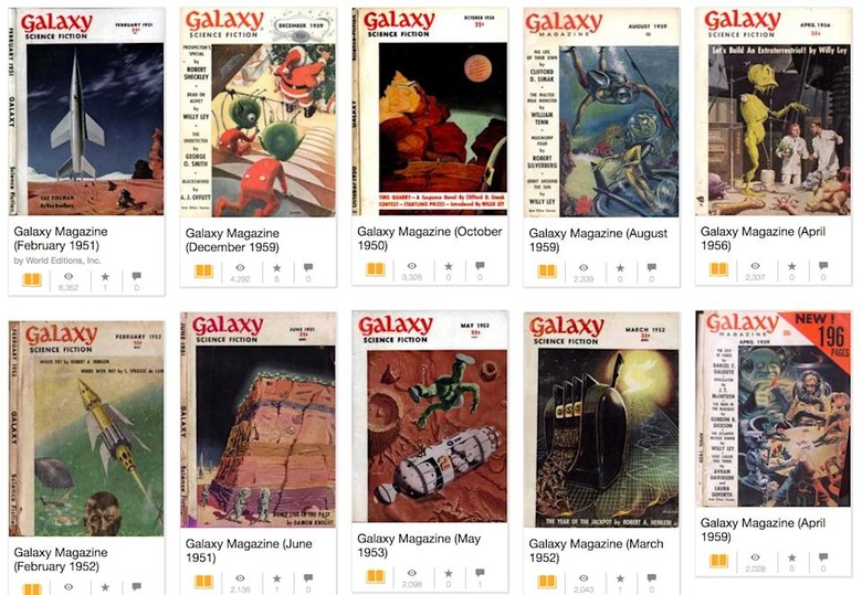 The next time you watch a big blockbuster sci-fi film like Alien: Covenant, you can thank the original pulp magazines. The written form of the popular genre got its start in comic book-sized magazines like Amazing Stories, Astounding Science Fiction, Galaxy Science Fiction, The Magazine of Fantasy & Science Fiction and Isaac Asimov's Science Fiction Magazine. These publications, under the direction of influential editors like John W. Campbell, Jr., helped improve the genre from basic adventure stories to more thoughtful, well-written speculative fiction by authors like Robert Heinlein, Isaac Asimov, and Arthur C. Clarke. It's not an overstatement to say that these magazines created the current science fiction craze. Now, Galaxy Science Fiction, a magazine that published Ray Bradbury's "Fahrenheit 451" and Alfred Bester's "The Demolished Man," is available for free online.