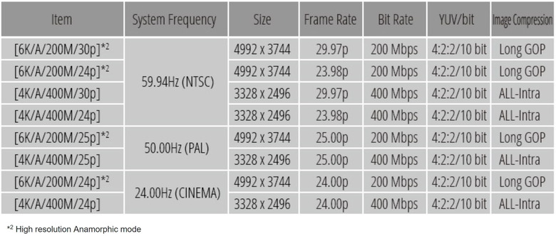 With the release of this option, the GH5 becomes one of the highest-resolution 6K anamorphic cameras, despite costing tens of thousands less than models from RED and Alexa, EOS HD points out. While the images are 10-bit, the data rate is low for this mode (200 Mbps) compared to rival cameras, however. If you want more data, you can shoot 4K anamorphic (3,328 x 2,496 resolution) at 400 Mbps. Hopefully, Panasonic will bump the 6K anamorphic data rate at some point.