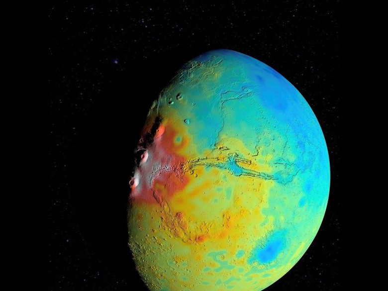 To get more information out of the data we have from Mars, NASA researchers took into account the topography, or elevation changes, on the surface of the planet. That information combined with gravity field data provided calculations of Mars' crust that depict a less dense surface than we thought it had. Based on what we knew about what makes up Mars' soil — which is how we've estimated its crust density before — researchers believed the planet's crust was about as dense as the ocean floors on Earth, but it turns out to be less dense than that. "As this story comes together, we're coming to the conclusion that it's not enough just to know the composition of the rocks," Greg Neumann, a researcher on the project, said in a statement. "We also need to know how the rocks have been reworked over time."