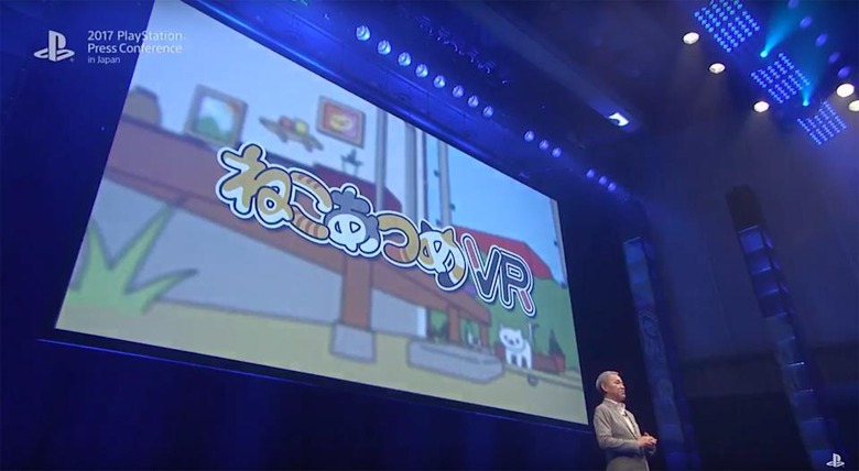 Neko Atsume was the smartphone hit where you collected and fed cats. That was... mostly it. It also took over the lives of several of my friends, and was huge enough to warrant a movie spin-off in Japan. Apt, then, that Tokyo Game Show is where PlayStation Japan President Atsushi Morita announced a virtual reality version of the cat... feeding.. sim (?), with no more information beyond a 2018 release date on PSVR. But, if I get to role-play as cats, then consider me intrigued.