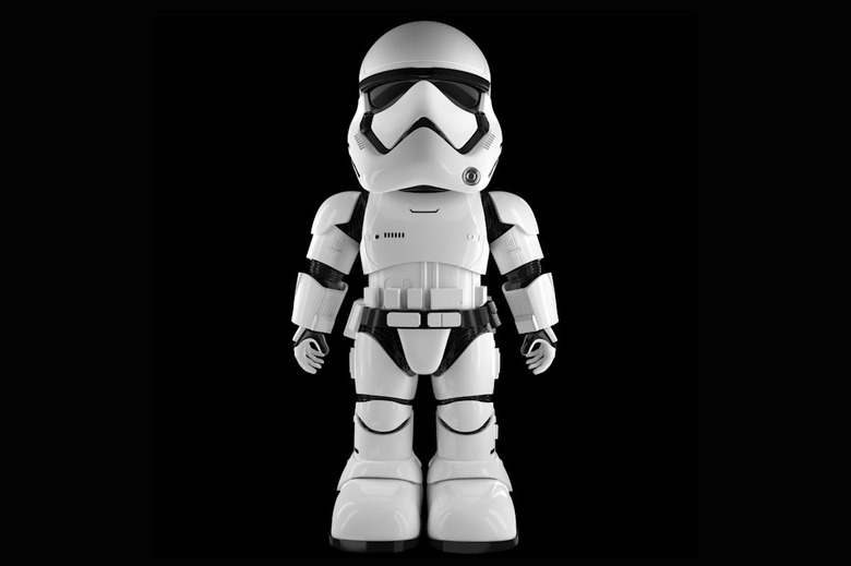 We know what Star Wars fans will be wishing for this Christmas — aside from Sphero's R2-D2 and BB-9E toys. Ubtech, the company behind the dancing Lynx robot, is releasing a Stormtrooper bot. Although it can't teach you yoga, you can use voice commands to instruct it to ward off intruders (hopefully not with an actual blaster). Its facial recognition tech also allows it to store up to three faces in its memory bank. That way, it can shout at any uninvited guests that keep barging into your room. And, its accompanying mobile app packs an augmented reality game that lets you fight off the Resistance and launch First Order attacks. The robot is available for pre-order from Ubtech right now, and will ship in November. It will set you back $300.