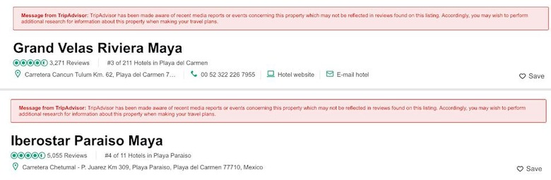While the warning labels don't specify what kind of intrigues the establishments are involved in, the company seems to have tagged the Mexican resorts specified in Milwaukee Journal Sentinel's exposé.