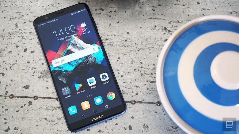Honor spilled the proverbial beans on its new mid-range 7X smartphone a few weeks back, but kept mum on pricing and availability at the time. As expected, it was saving that piece of the puzzle to announce at its London event today. In the US, the Honor 7X is now available to pre-order for $200 for mid-December delivery, which makes the £270 UK and €300 European prices (shipping immediately in some territories) seem downright unfair, even if they're more or less what you'd typically pay for a mid-range handset. While it doesn't break the bank in any region, you have to remember the phone lacks a few features some might consider essential, like waterproofing, fast-charging and NFC for mobile payments. What you are primarily paying for, then, is the slim-bezeled, 5.93-inch, 18:9 display with a 2,160 x 1,080, so your interest in the device will no doubt be entirely dependent on what features you consider a priority.