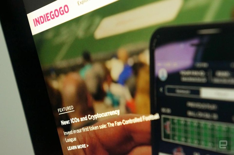 There's a frenzy over cryptocurrency at the moment (helped in no small part by bitcoin's sky-high value), and Indiegogo is determined to milk the trend for all it's worth. The crowdfunding site has partnered with MicroVentures to enable investments in the initial coin offerings (ICOs) that are all the rage as of late. If you think a new digital cash format is going to be the next big thing, you now have a potentially easier way to pour money into it — and you don't need to be an accredited investor, which limits the scope of many ICOs. The first offering on tap is the Fan-Controlled Football League, which is running a pre-sale for $5 million tokens for 10 days after this writing.