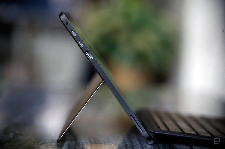 The machine I've been testing sits one notch below Eve's most premium offering, and the only difference is it ships with a 512GB SSD. (It, too, costs about $500 less than the comparable Surface Pro.) Consider me impressed. The dark aluminum chassis has been a bit of a fingerprint magnet, but the build quality is reassuringly sturdy. The V's body is a little heavier than you might expect since the community lobbied for a bigger battery, but it was never uncomfortable to lug around and slip into a backpack.