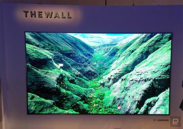 Last year, Samsung announced a 34-foot 4K LED TV that could challenge movie theater screens, and now it's ready to sell a version for home use. The Wall by Samsung uses similar MicroLED tech that is "self emitting" (read: Each pixel works without a backlight) and can be assembled in extremely large sizes thanks to its modular design. We don't have much information to go on yet, but the 146-inch 4K screen we saw promises "outstanding brightness, contrast, and close-to-perfect viewing from any angle."
