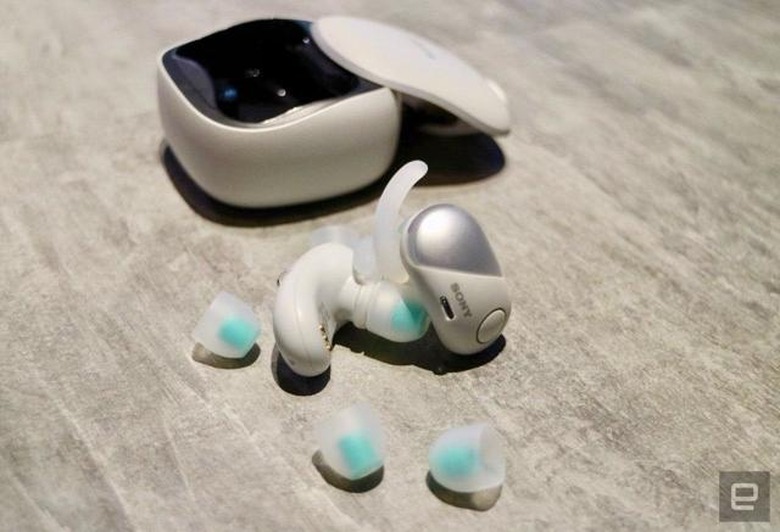 During last night's press event, Sony revealed its latest sports earbuds with totally wireless and wireless models — two of which feature active noise cancellation. The company debuted its WF-1000X back at IFA, but the WF-SP700N that's here at CES has the sporty treatment. This includes IPX4 rating that protects the tiny audio devices from sweat and moisture at the gym or during a run. In fact, Sony claims it's the first to put active noise cancellation in a pair of true-wireless water-resistant sports earbuds. According to Billy Steele, the WF-SP700N had punchy highs and a solid amount of bass — something that's often lacking with these kinds of headphones.
