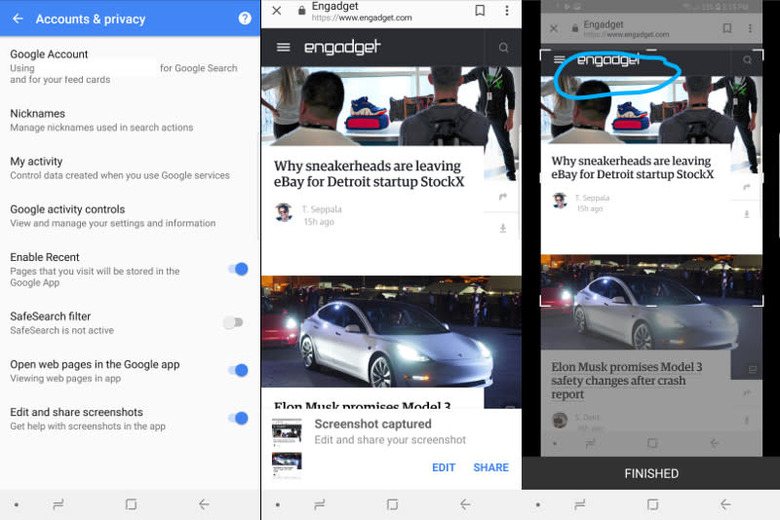 Google app is extremely close to rolling out a built-in screenshot-editing tool — so close that you can now try it out as a beta tester on Android. If you join the app's beta program and download version 7.21, you'll find an option that says "Edit and share screenshots" under settings and then under Accounts & Privacy. Toggle that on, and you'll see a panel pop up from the bottom of the page whenever you take screenshots anywhere you are within the Google app.