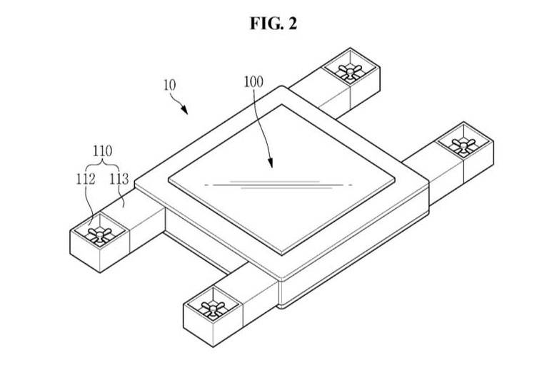 Samsung was awarded a patent by the US Patent and Trademark Office last week for what it's calling a "flying display device." The patent, spotted by LetsGoDigital, was filed for in 2016 and describes a drone-like device with a screen that could be capable of streaming video, like, for example, broadcast television, but, as The Verge points out, it could also presumably be used as a hovering advertisement display. According to Samsung's patent, the flying screen would be supported by four propellers and could have features like voice recognition, a vibration system, an obstacle detection unit with a camera or a sensor as well as gyro, motion and accelerometer sensors. And the display could be a range of devices, including a tablet, a laptop or a mobile medical device.