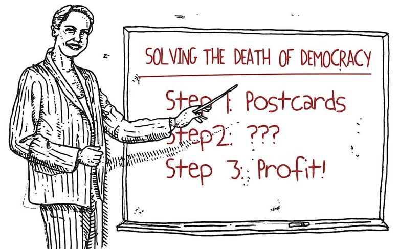 Facebook looked at its burning forest and focused on one tree: the ads. In all of its (alleged) wisdom and leadership about preventing harm, the company told the press it would, like, totally send people postcards in the mail "to verify the identities and locations of anyone hoping to buy ads related to federal-level candidates."