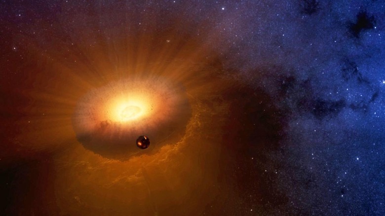 This new theory is based on a new planetary object called a synestia. These are produced when two planet-sized bodies crash into one another, resulting in a quickly spinning formation of rock. The release describes it as, "a giant donut of vaporized rock." Synestias only last a century or two before they condense into a planet.