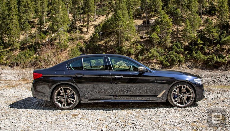 The M550i I tested with all the bells and whistles was about $88,000. Sure, an M5 will blow it away in the corners and in a straight line, but we don't always need an insanely powerful car to get around. The M550i is "good enough." If that sounds like a compromise, it's not. The slightly more powerful 5 Series is an enjoyable cruiser that'll leave you with some extra cash in the bank. And if your door is blocked when you leave your financial institution, you can use the Display Key to pull out.