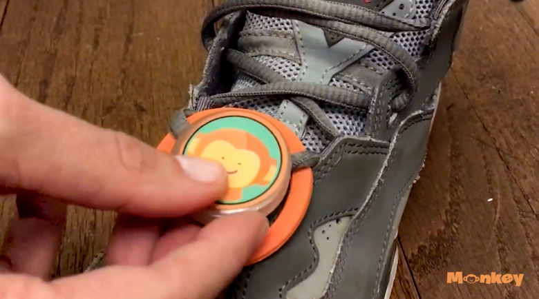 The Monkey tracker is a preconfigured RadBeacon Dot; its radio board is incorporated into a kid-friendly exterior and attached to the child's shoe. The form factor was something Gavin worked on for more than six months. It needed to be something appealing to boys and girls, and tolerable to wear. Gavin considered a lanyard and even a clunky bracelet before settling on the current design.