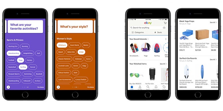 Interests is available right now through eBay's Android and iOS apps in the US, and should come to the web and other countries in the "coming months." In a sense, this is a counter to rivals like Amazon — you may be less compelled to visit the competition if you can regularly something you'd like on eBay's home screen.