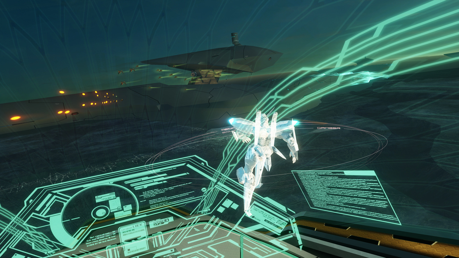 The shift to VR is not entirely perfect: Close-range battles with multiple enemies were a bit dizzying. My demo included few battles against roughly 30 tiny drone enemies. They're easy enough to kill, but attempting to do so with your blade, rather than shooting them with heat-seeking missiles, will make the character jump between auto-locked enemies.