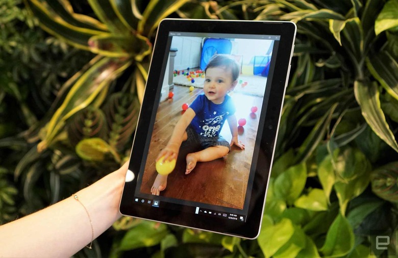 The Go weighs just 1.15-pounds — a quarter of a pound lighter than the Surface 3, and a tad heavier than the 1.03-pound iPad. While that's not a huge size improvement, it's enough to make the Go feel more like a typical tablet, instead of a slightly smaller Windows PC. During a brief product demonstration in New York City, a Microsoft representative genuinely surprised me by pulling the 8.3mm thin Go out of her slim purse. It was almost like a magic trick — it didn't look like there was anything in her purse at first. That goes to show what Microsoft is aiming for with the Surface Go: It wants to deliver a machine that'll simply disappear as you carry it throughout the day.