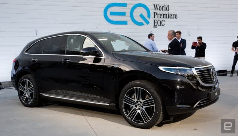 This EQC (official name: EQC 400 4Matic) is Mercedes-Benz's crossover foray into electrified vehicles. With a smooth space-age design the company calls an "avant-garde electro-look," the EQ is sure to turn heads when it lands on US shores in 2020. It's equipped with dual motors capable of 402 horsepower and 564 ft-lbs of torque, which Mercedes said will push the SUV from 0 to 60 MPH in 4.9 seconds.