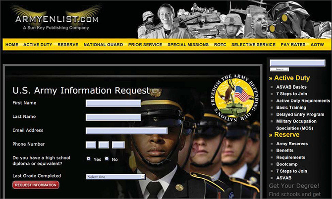 FTC has successfully seized and shut down a number of fake military recruitment websites that trick people into giving them their personal information. The websites' operators, Alabama-based companies Sunkey Publishing Inc. and Fanmail.com LLC, have agreed to hand over their domains as part of their settlement with the agency. According to the FTC, the websites — army.com, navyenlist.com and armyenlist.com, among others — pose as legit military recruitment portals, when in fact they sell the details applicants send in as marketing leads to post-secondary schools for $15 to $40 per. They lure people to their domains by using search ads that include phrases such as "The Army Wants You! " and "Coast Guard Wants You!"