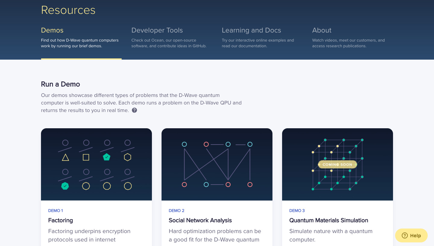 "This is more than just a big front end for the quantum computer," Baratz warned. The Leap portal offers a number of other valuable resources for its users. The Learn section is filled with articles and educational materials for neophyte users as well as demos for factoring and social network analysis operations, as well as quantum materials simulations.