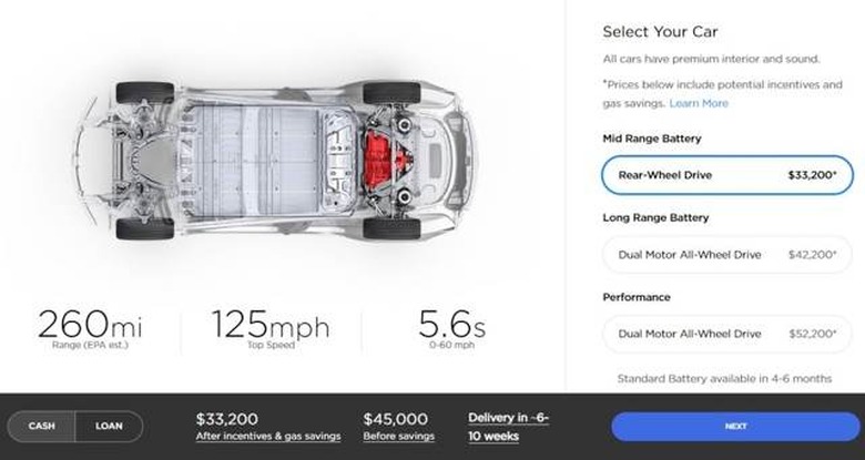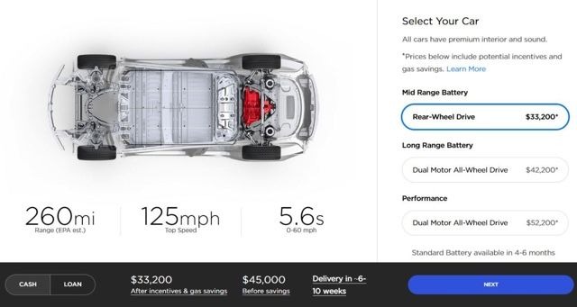 According to Elon Musk, that promised $35,000 Model 3 (before any tax rebates are applied) is still months away, but the company has an alternative for people who would like to get theirs this year and still pay a little less. A new mid-range battery + RWD version is now the cheapest base model we've seen yet, dropping the entry price from $49,000 to $45,000.