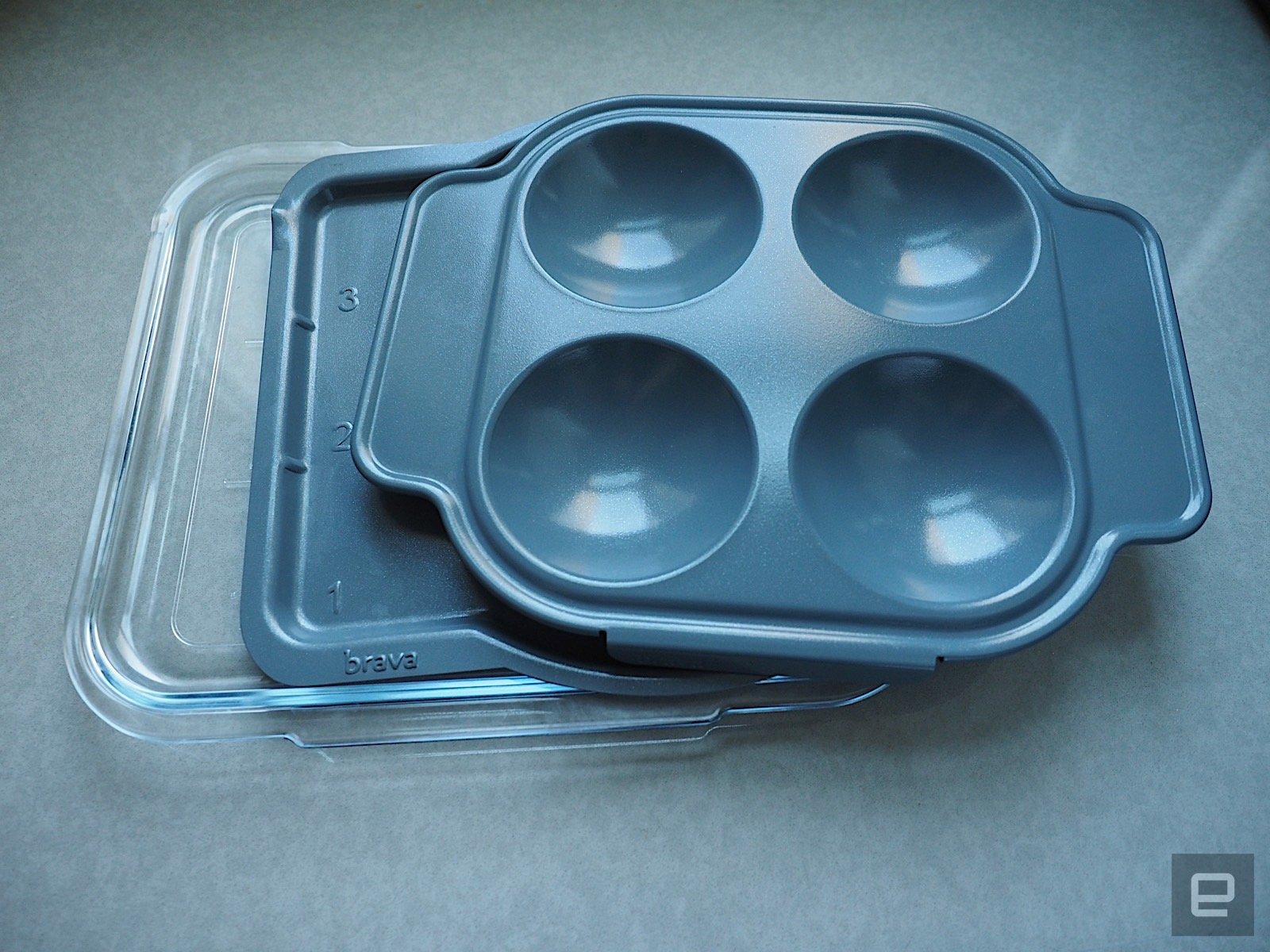 In addition to cooking foods quickly, the Brava is also great at cooking multiple foods at once. The oven is essentially divided into three zones from front to back, and each zone can be heated independently of the other. Because of this, the Brava can program each zone to heat at a different power level and at a different interval. The oven comes with two trays — one metal and one glass — that are each marked with the numbers 1, 2 and 3, so that you'll know where to put the different ingredients.