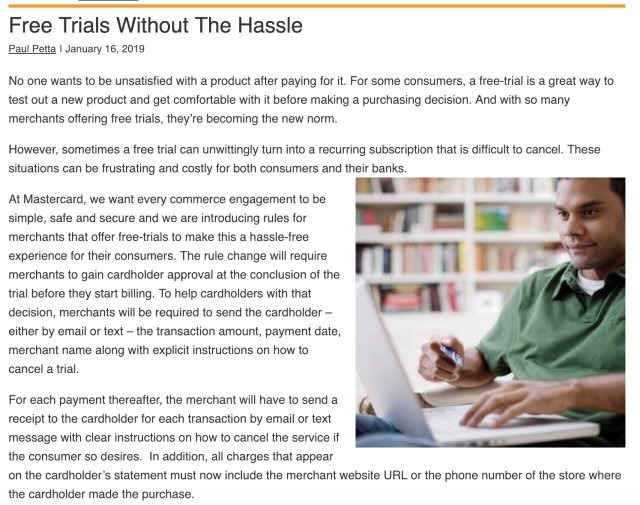 MasterCard won't let companies bill you after free trials for physical products (update)
