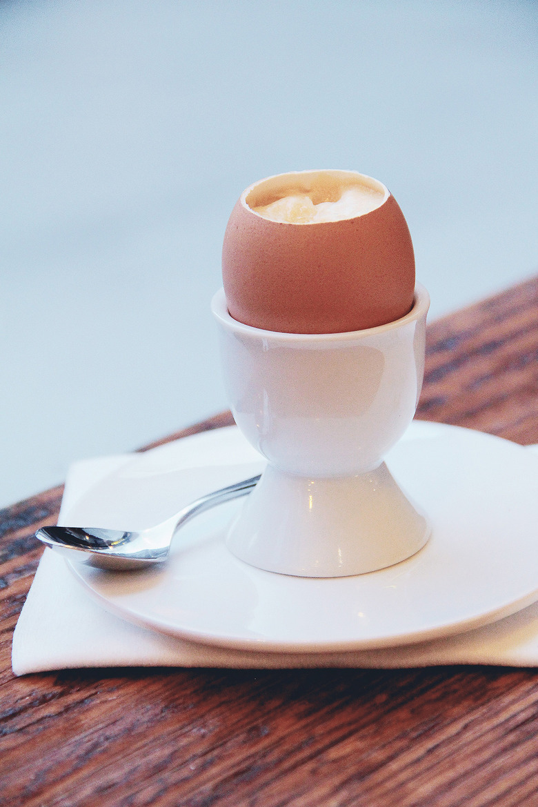 On first glance, the Egg looks like, well, a raw egg with the top of its shell removed. But dig in with a tiny spoon and you'll find milk chocolate pot de crème with a dollop of caramel sauce under caramel custard foam, topped with a drop of maple syrup and a few flakes of Maldon sea salt.