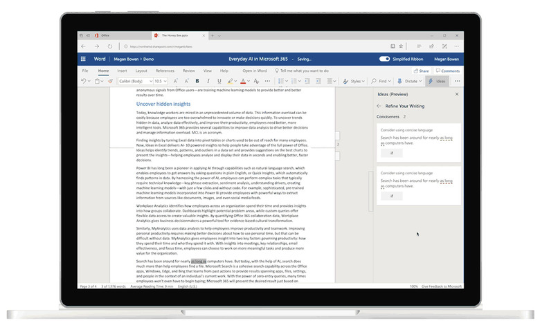 Microsoft is about to challenge Grammarly (not to mention Google) on its home turf. The company is developing an Ideas feature for Word's online version that uses AI to suggest grammar changes, among other assists. In addition to catching basic errors, it can recommend rewriting phrases to improve concision, clarity and inclusiveness. Your report might be more to-the-point without requiring quite so much proofreading.