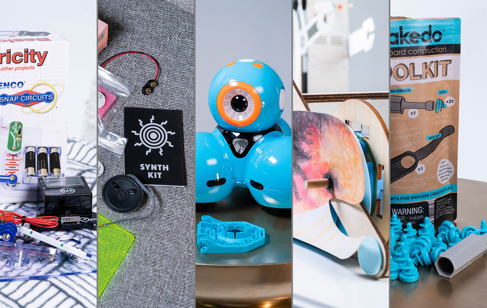 The most innovative of this lineup, the Makedo toolkit is also the lowest tech and least expensive. It allows kids to amp up their cardboard-box play by designing, creating and building worlds from the recycling pile.