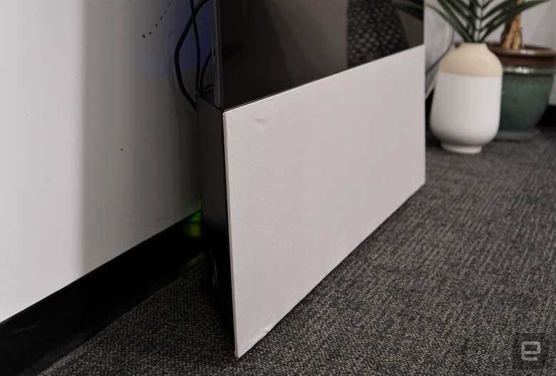 Canvas's biggest issue right now is that it's only designed for LG's OLED B and C-series TVs from 2016 to 2019. It doesn't support the curved C-series 2016 model, or any of LG's higher-end OLED offerings. While you could conceivably attach any TV to it, you won't get the clean look you'd get with LG's OLEDs. At just 15-inches tall, Canvas might also sit a bit too low for most TV watchers. Rasmussen says the company is considering a wall mount accessory to help with that issue.