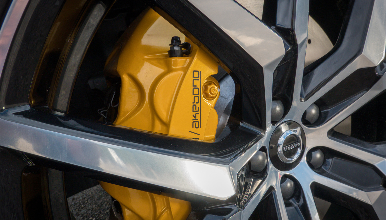 While I'm testing the acceleration of the vehicle I'm also given a chance to run it through a slalom where it performs impressively. The body roll is less than expected and hard braking from 155 km/h results in far less diving of the front end than I anticipated. These impressive body dynamics are thanks to Volvo's use of Öhlins adjustable suspension.