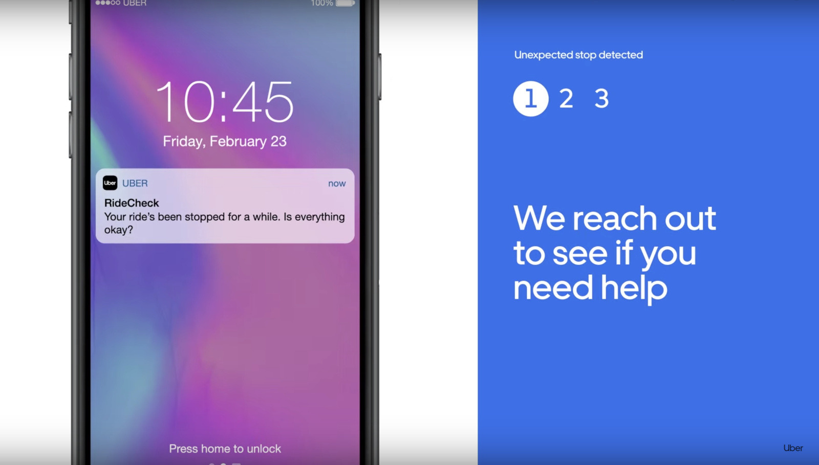 Uber keeps an eye out for potential crashes and unusual trips that go off course by using GPS data, as well as data from the other sensors in a driver's smartphone. It says it spent the past year testing and refining the feature and that it's working on initiating RideCheck notifications for other scenarios.