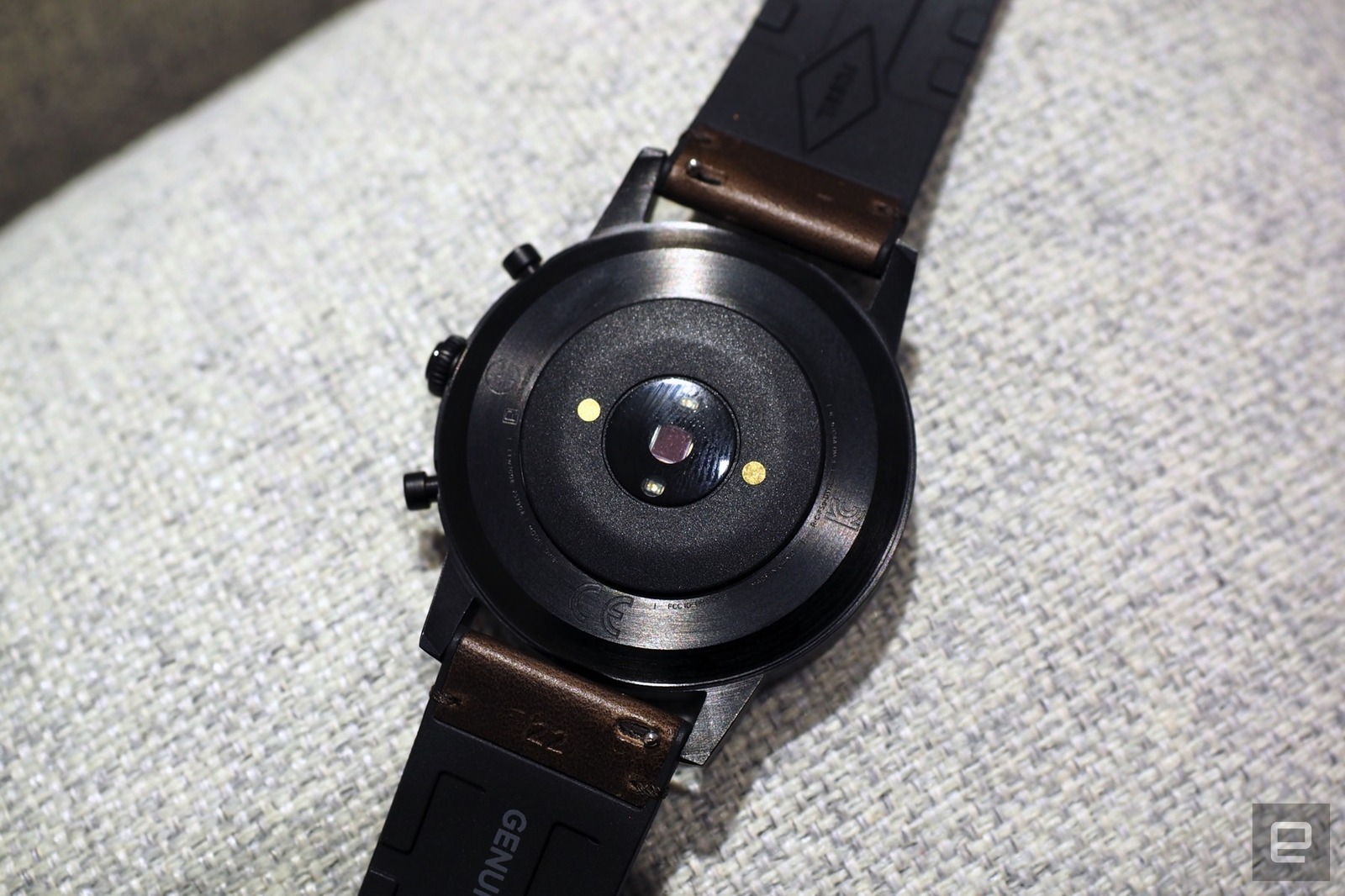 The Fossil Hybrid HR has an E ink face behind a pair of analog hands and, best of all, built-in heart-rate tracking. The latter comes from a PPG sensor on the underside of the case which will display your vitals in real time on the face. And you can add up to four complications to the display, covering your step count, alternative timezones and phone notifications through to your projected commute time. It'll work well in darkness, too, since you just need to double tap the crystal to activate the backlight.