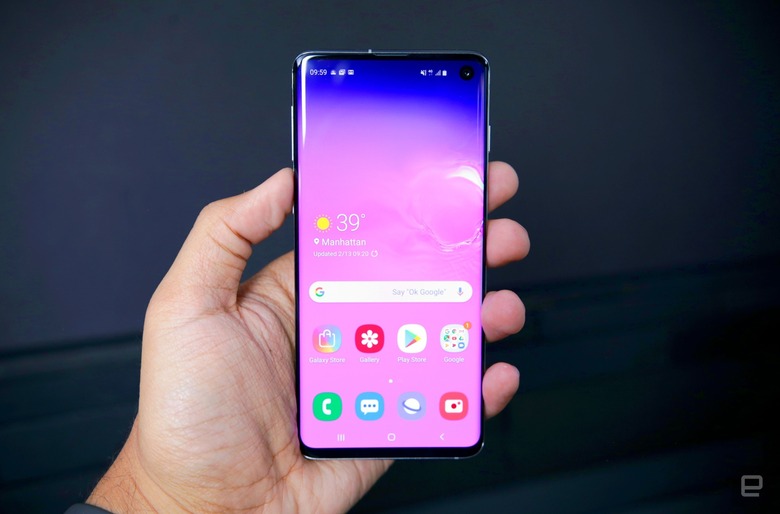 The Galaxy S10 is Samsung's flagship model. Introduced early this year, it has an all-screen, bezel-less display with a punchhole for the front-facing camera. The screen is HDR10+ certified, meaning you'll get more dynamic range on your smartphone. There's also an in-screen fingerprint reader, three rear-facing camera lenses and promised improvements you'd expect, like faster speeds and a longer-lasting battery.