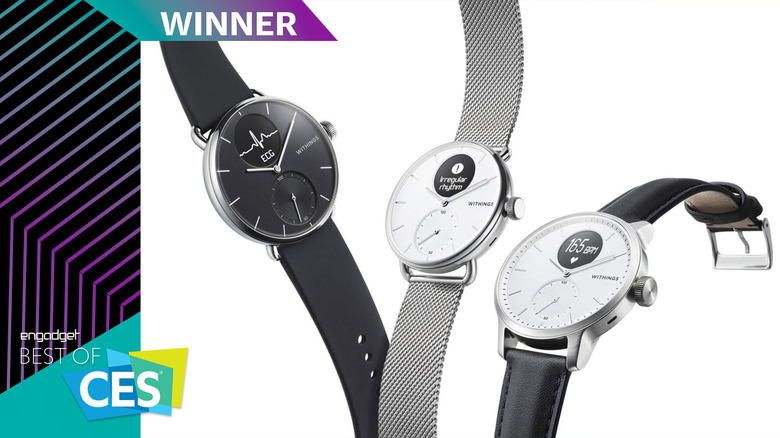 It may look like an analog watch, but Withings' ScanWatch is really a tool for keeping track of your overall health. A heart rate sensor checks how you're doing, and if it finds abnormal cardiac activity, you'll be asked to check your vitals with the onboard ECG. It can also track your sleep and look for signs of sleep apnea with a built-in SpO2 sensor. A device that does all of this, look good and still lasts for 30 days on a single charge is clearly one that deserves to be crowned as the best digital health and fitness product of CES.