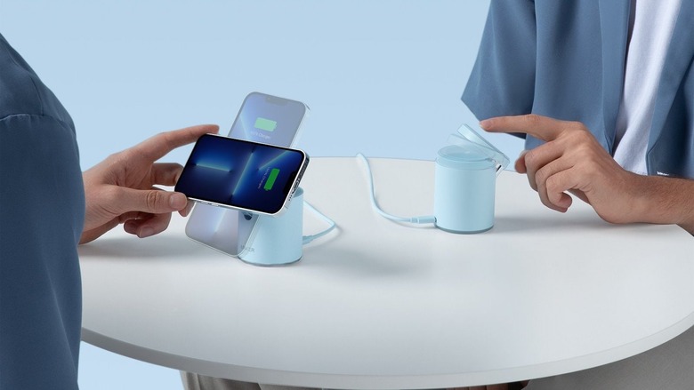 Anker's 632 MagGo 2-in-1 Wireless Charging Station delivers 20 watts of charging power for iPhone 13/13 Pro and iPhone 12/12 Pro models, while also letting you charge up your AirPods Pro wireless earbuds. Your phone attaches to the charging base magnetically, and it can even flip up 60 degrees so you can easily see the screen. Included is a 20-watt USB-C charger and USB-C to USB-C charging cable, all for $56 or 30 percent off, in powder blue only.