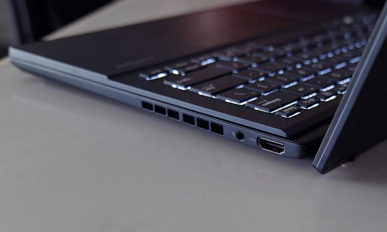One of the most impressive things about the Zenbook Duo is that it doesn't look like some kind of Frankendeivce. It's just a regular-looking 14-inch laptop. Even after you open it, things still look normal with a physical keyboard and touchpad, not to mention a healthy selection of ports around the outside (two Thunderbolt 4, one USB 3.2 Type-A and a full-size HDMI 2.1 jack). A small part of me wishes ASUS had found room for some kind of SD card reader, but I understand if there just wasn't space.