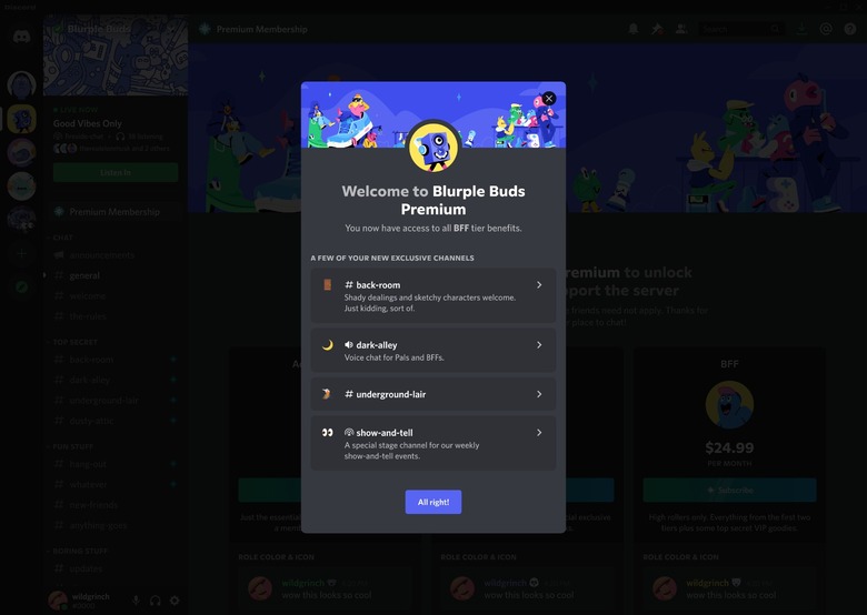 "Access to a channel can seem simplistic, but it's a foundational piece that someone can build a lot of flexibility on top of," said Jesse Wofford, group product marketing manager at Discord, in an interview with Engadget. One of the server owners the company is working with on this week's soft launch is someone who runs gaming bootcamps. According to Wofford, they've built an entire business around private lessons. The company wants to give those people the opportunity to create a sustainable business on its platform.