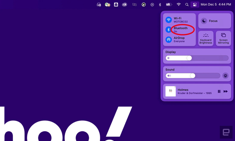 2. Click on the text that says "Bluetooth" (not the Bluetooth icon, which toggles Bluetooth on and off).
