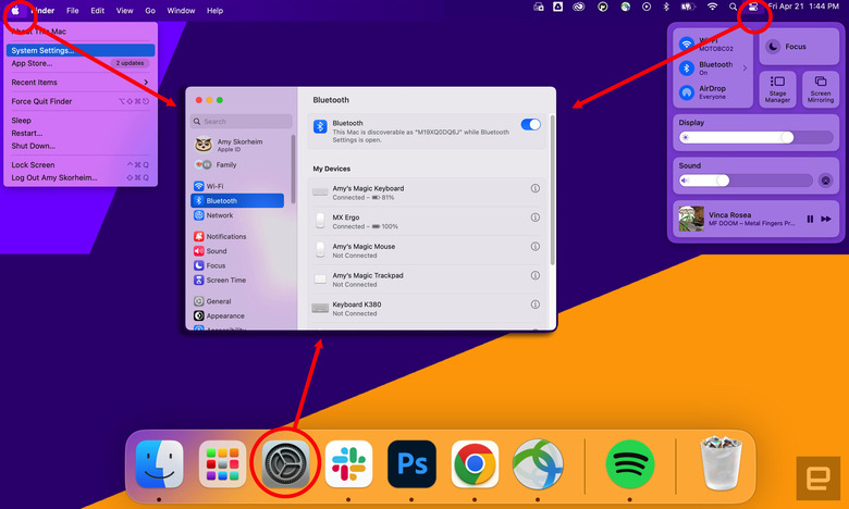 1. Click the Apple icon in the upper left corner of your Mac's screen and select System Settings. You can also click the System Settings icon in the dock or click on the Control Center icon in the upper right corner, and click on Bluetooth then Bluetooth settings. Once in System Settings, click on Bluetooth in the left panel.